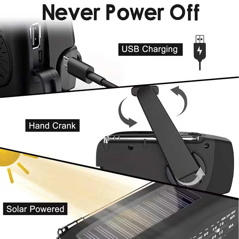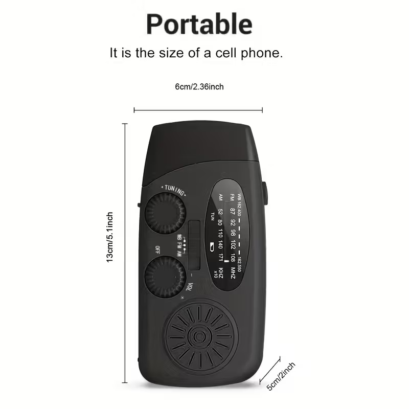Rádio Meteorológico Portátil com Manivela, Lanterna LED e Carregamento USB para Emergências, Incluindo Bandas AM/FM e NOAA, Ideal para Campismo e Situações de Emergência
